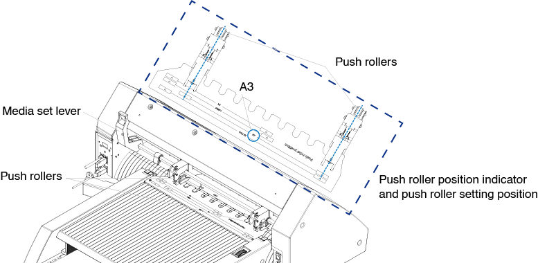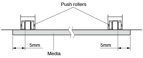 2. Adjust the position of the push roller so that the distance between the edge of the media and the edge of the push roller is 5 mm.