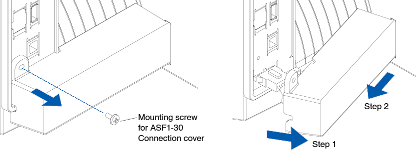 Remove the mounting screws for the ASF1-30 connection cover and remove the cable cover.