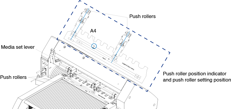 • For instructions on how to operate the media set lever and how to adjust the position of the push rollers for the CE8000-40, refer to the CE8000 Series User’s Manual.