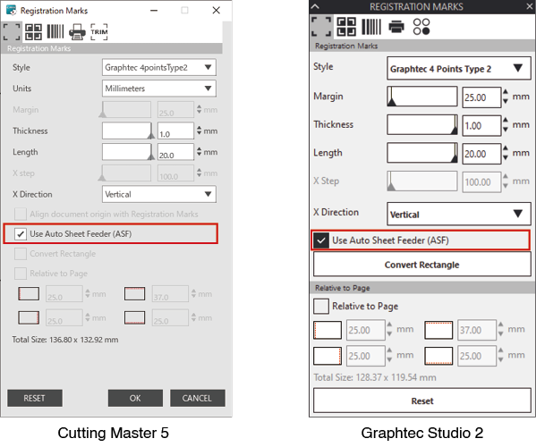 When you select the [Use Auto Sheet Feeder (ASF)] on the [REGISTRATION MARK (Registration Mark)] screen, the settings for ASF1-30 are reflected on the screen.