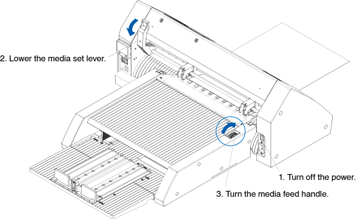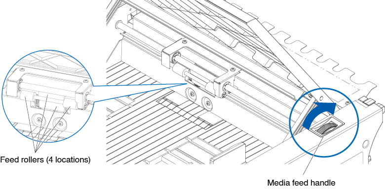 3. Turn the media feed handle in the direction of the arrow to eject the media.