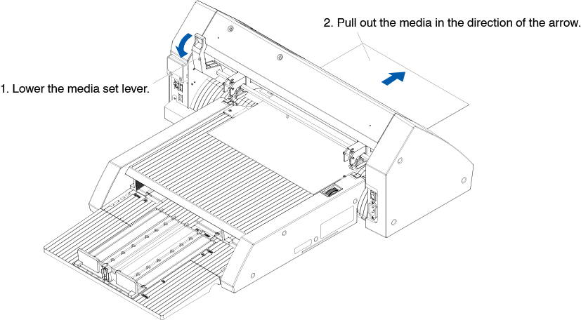 If the media cannot be fed and stops midway due to some reason, follow the procedure below to eject the media.
