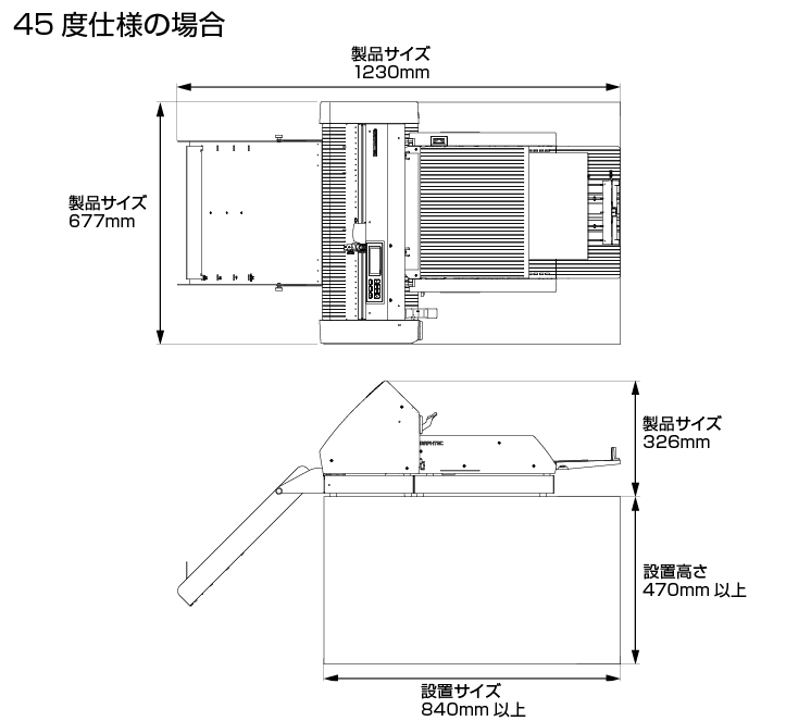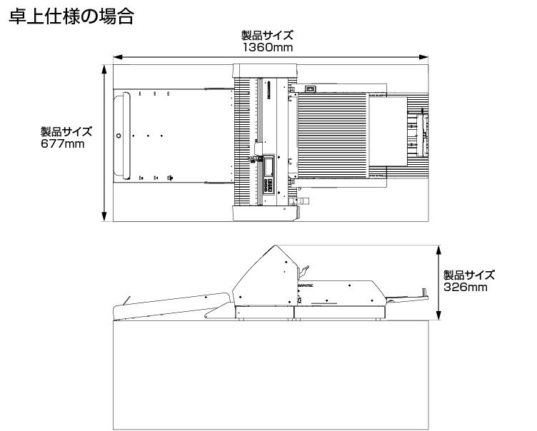 卓上仕様の設置場所は、製品サイズ以上の大きさにしてください。