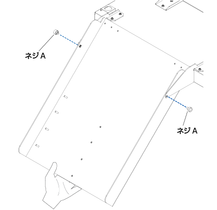 ネジA 2本を使用して、排紙トレイを手で支えながら固定します。