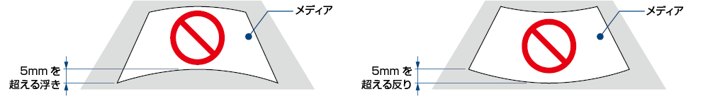 ● プリンタの種類やメディアによっては、印刷すると反りが発生することがあります。