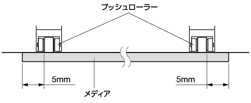 2 メディアの端とプッシュローラーの端が5mmになるようにプッシュローラーの位置を調整します。