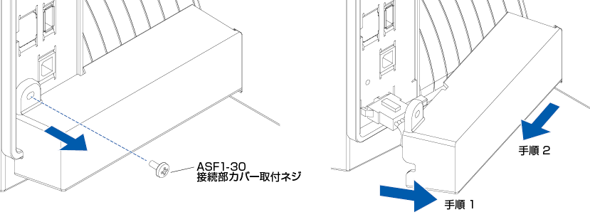 ASF1-30接続部カバー取付ネジを取り外し、ケーブルカバーを取り外します。