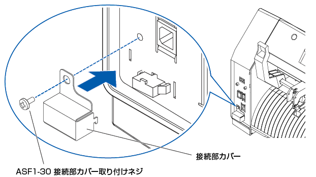 5 プラスドライバーを使用して、ASF1-30接続部カバーを取り付けます。