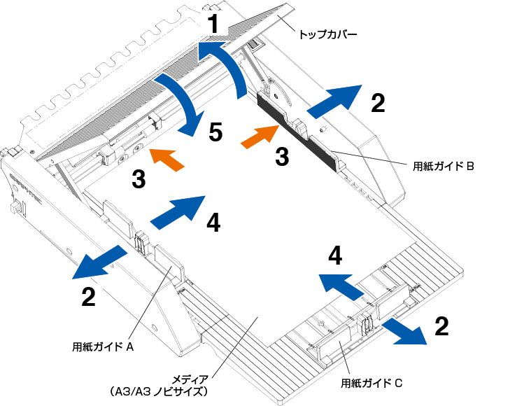 A3サイズおよびA3ノビサイズのメディアセット手順