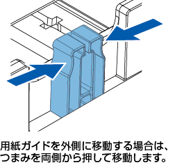 2 用紙ガイドA・B・Cを青矢印方向に動かします。