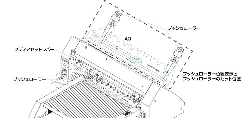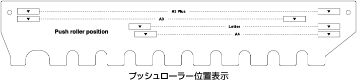 これ以外のメディアサイズもセットできますが、用紙ガイド、プッシュローラー位置の保証対象外になります。